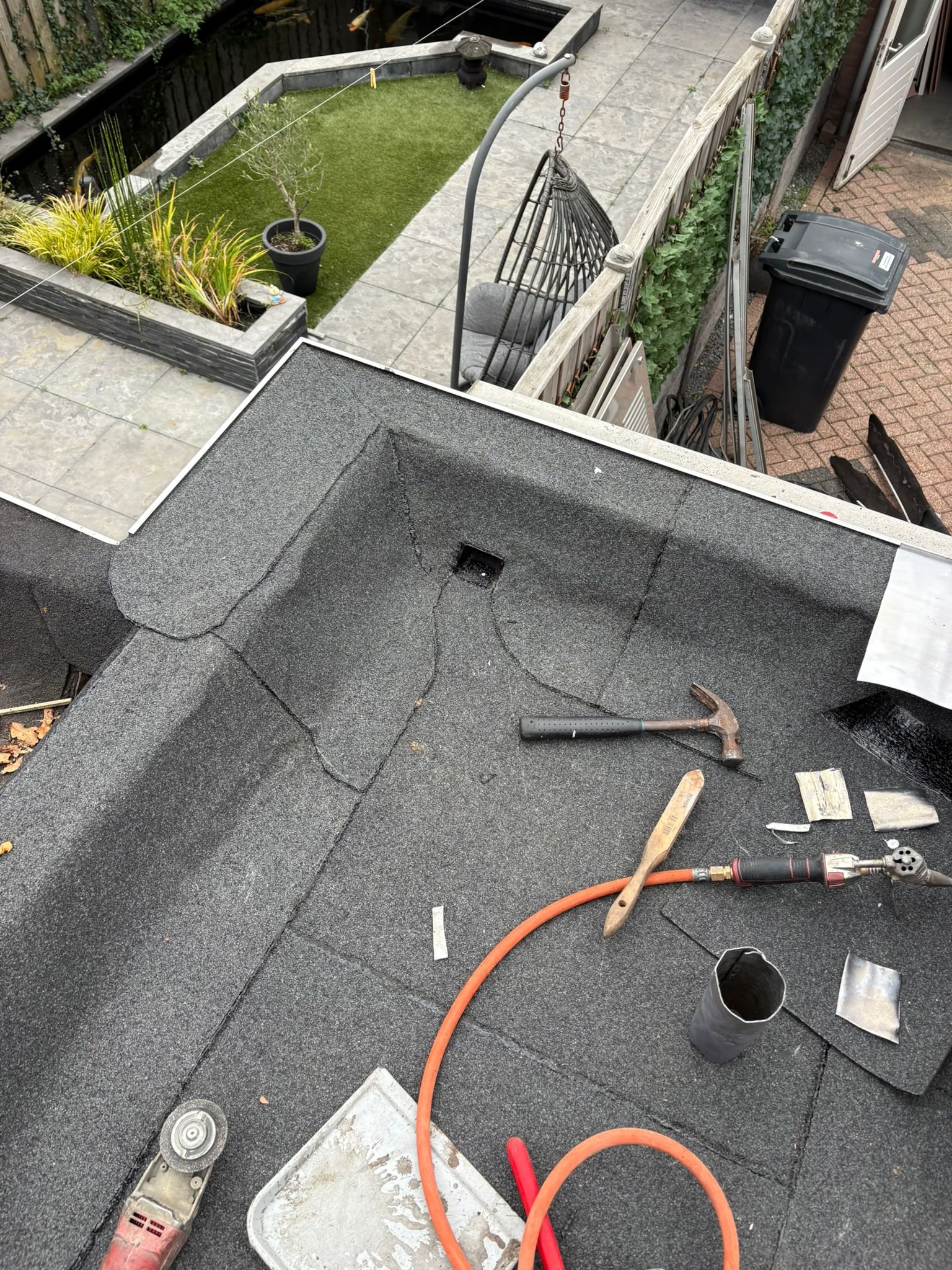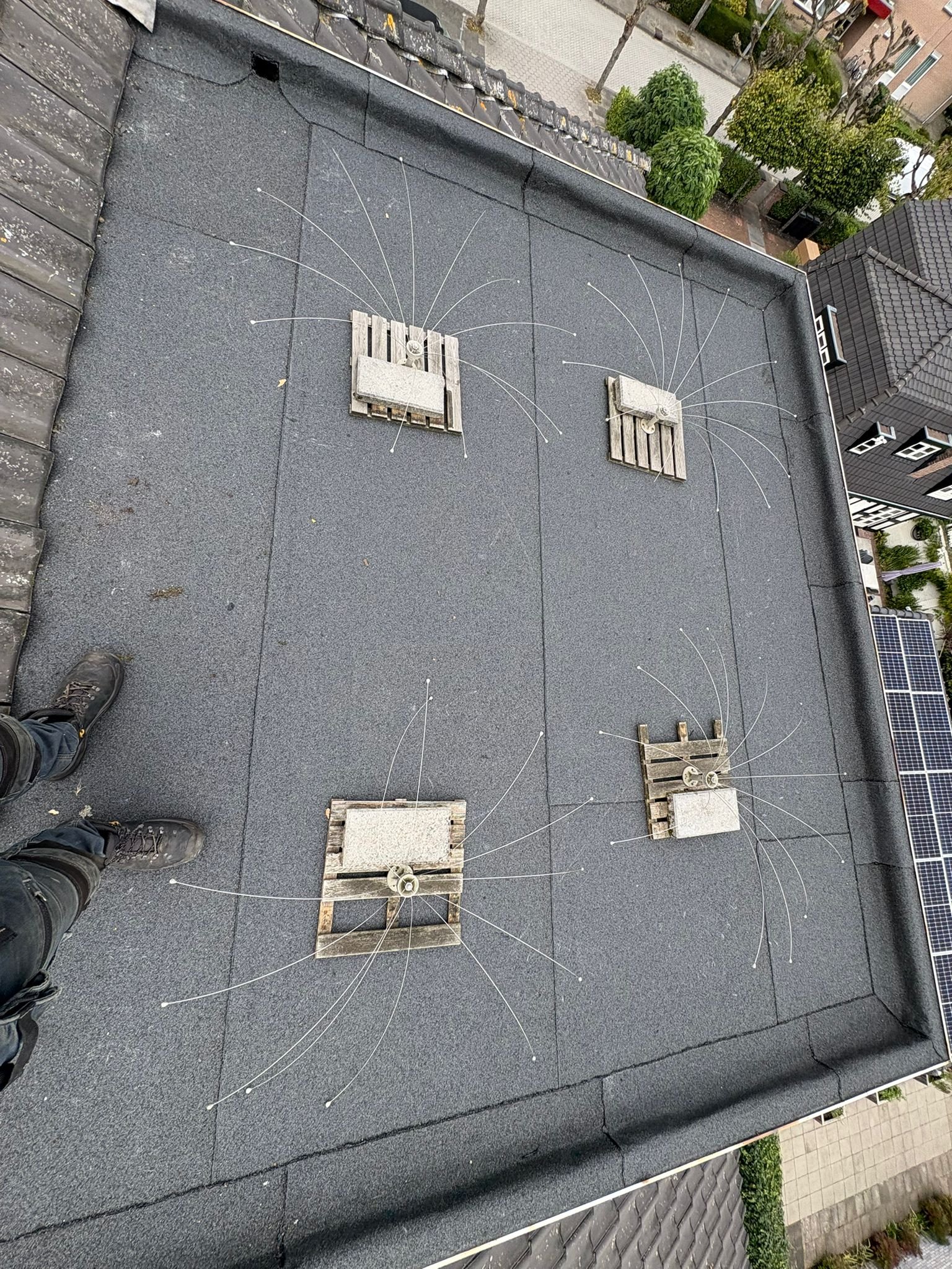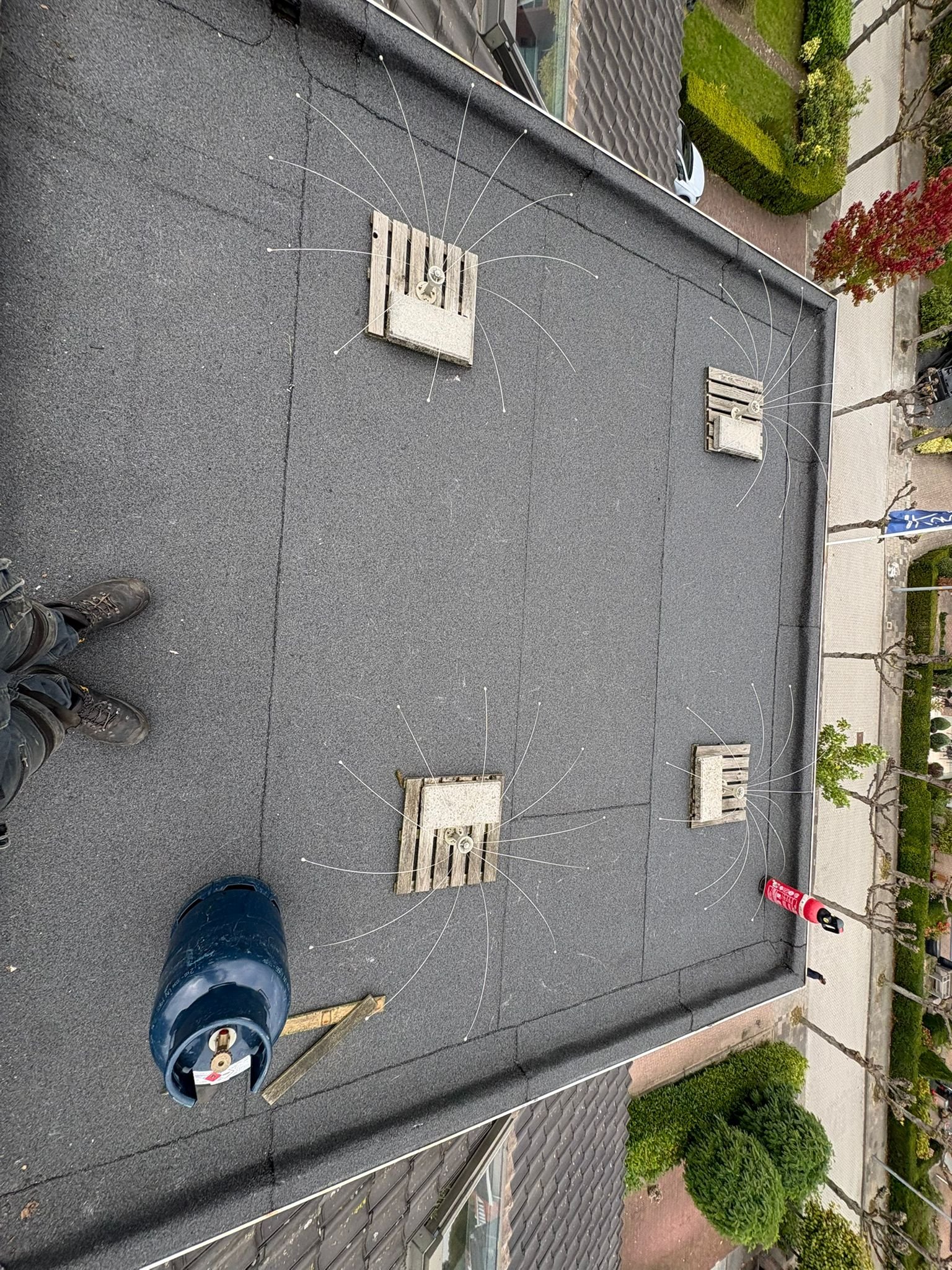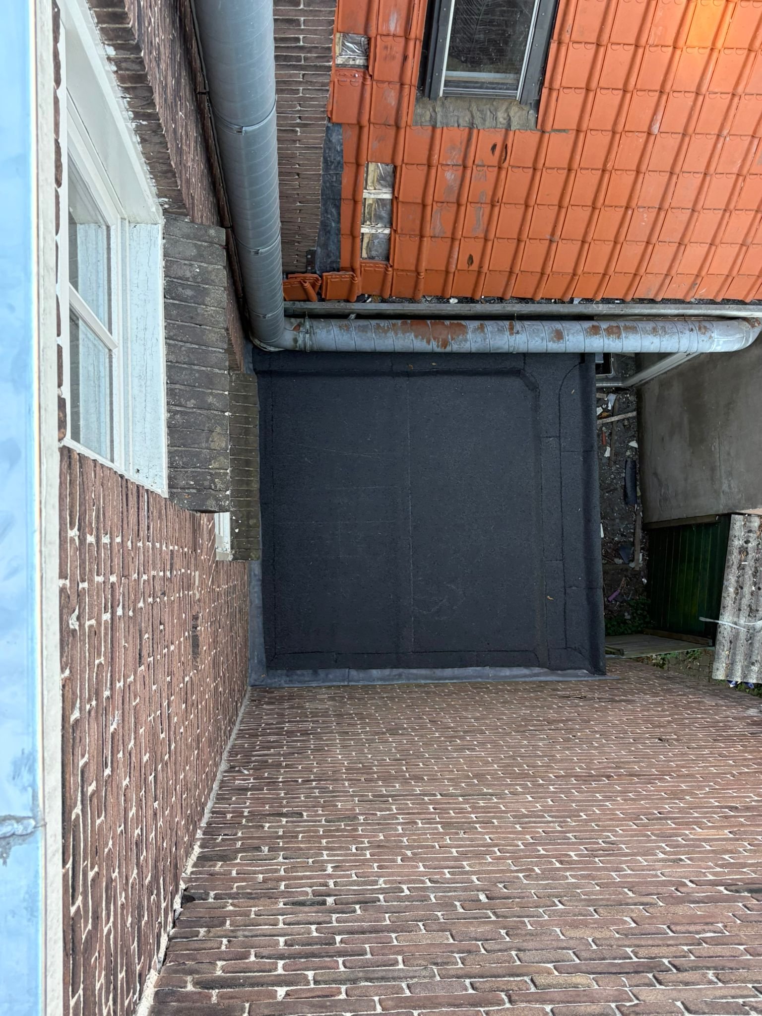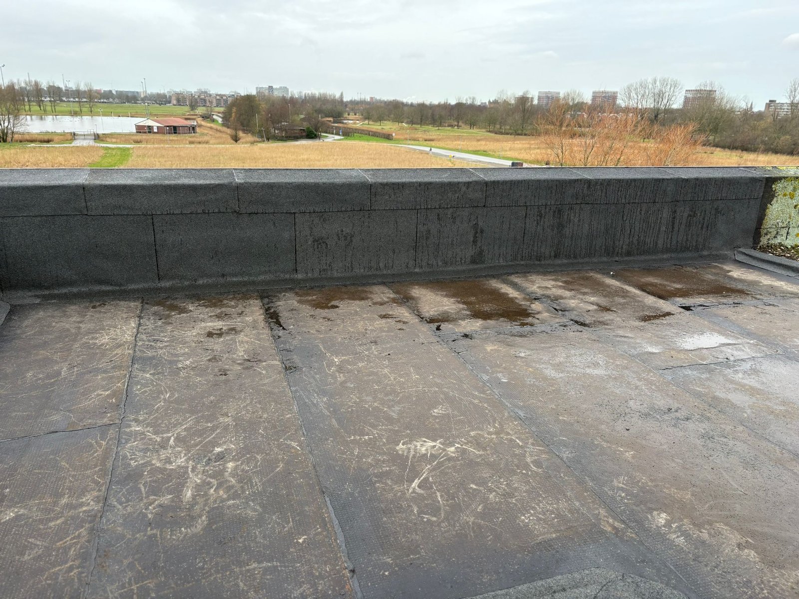 Duurzame en waterdichte afwerking voor platte daken met hoogwaardige bitumen brandrollen.