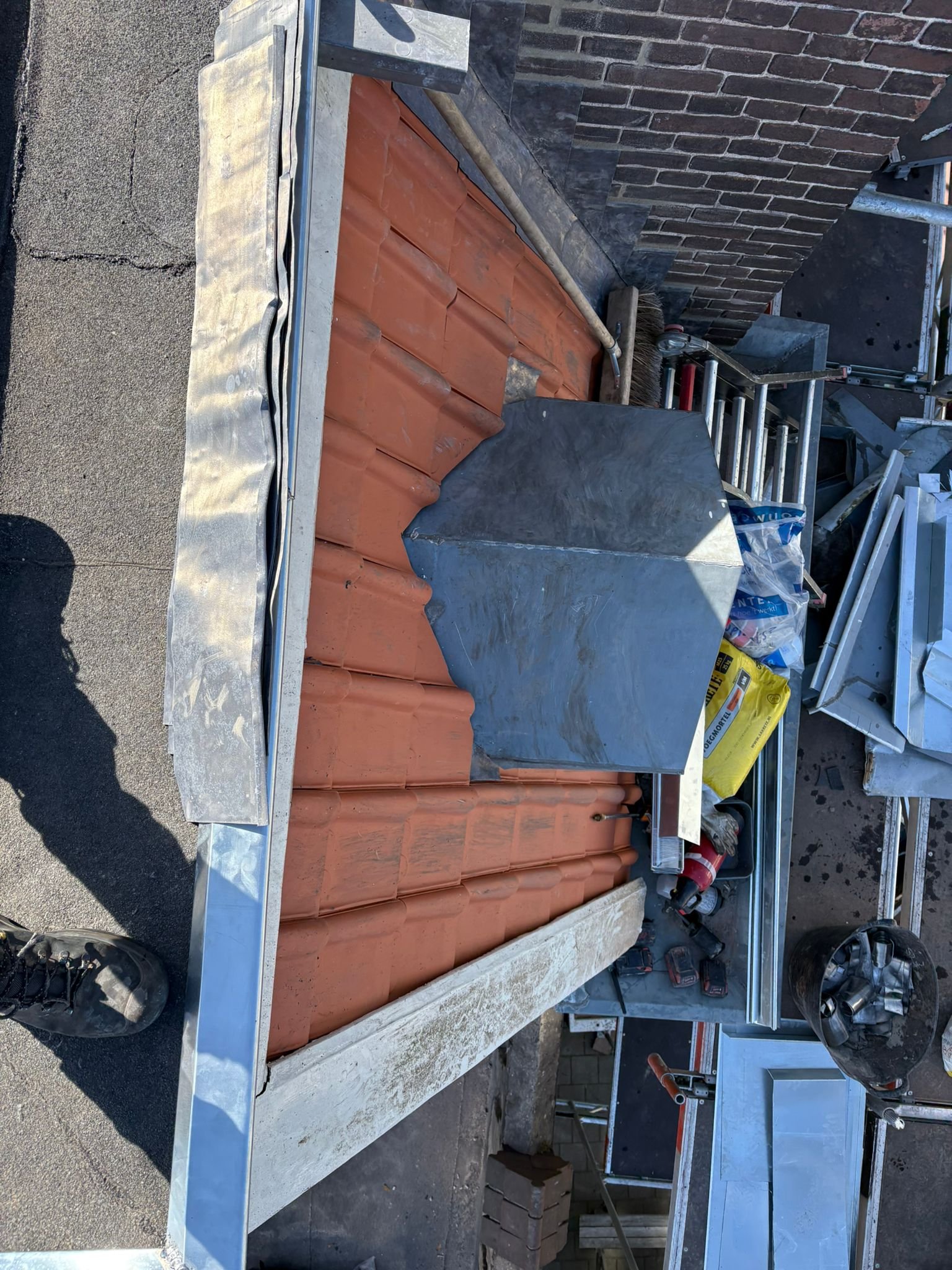 Bekijk Dienst →Vakkundig zetwerk voor een waterdichte aansluiting van dakkapellen, schoorstenen en goten.